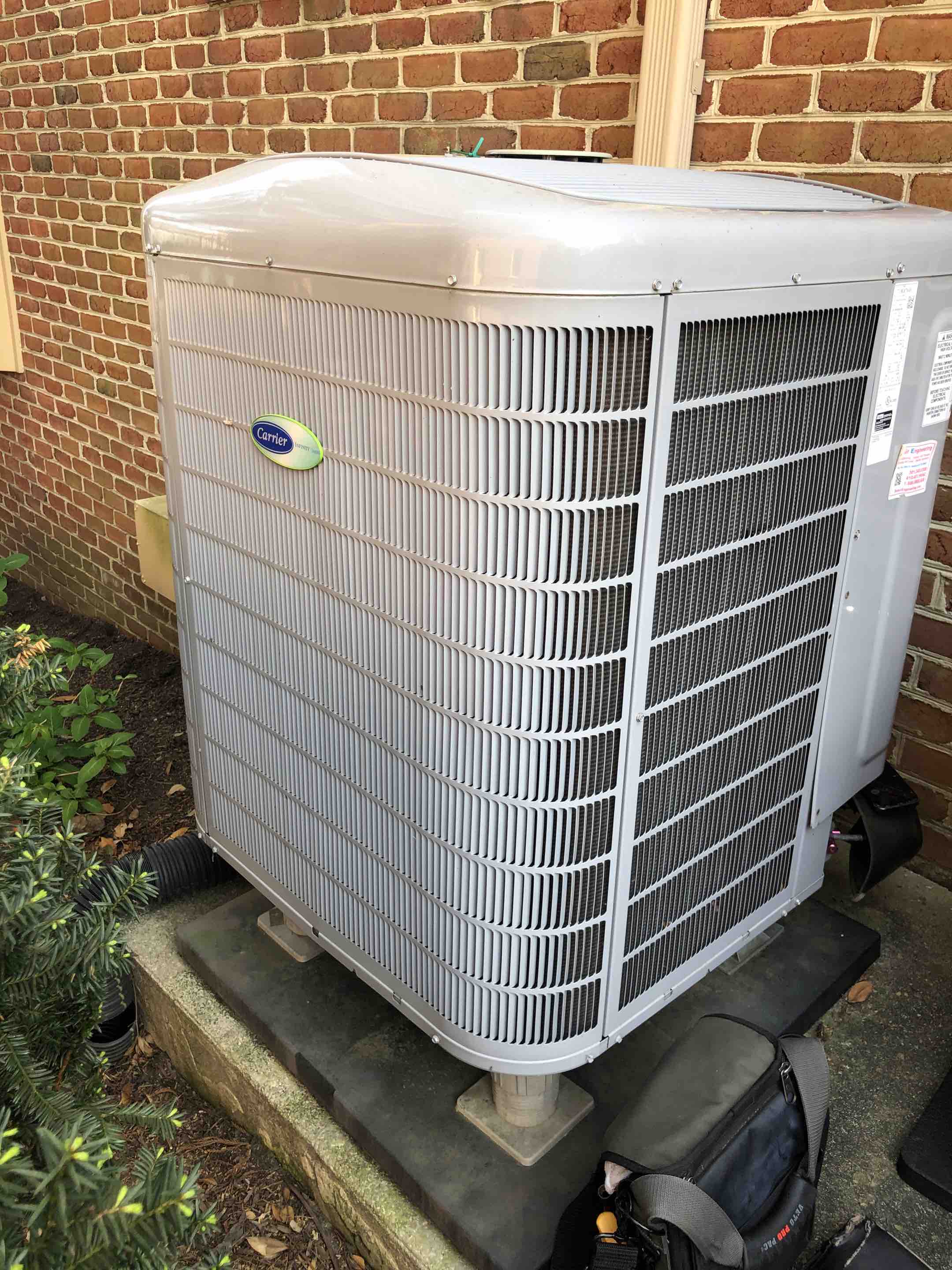 Carrier Infinity heat pump air conditioner AC air conditioning & heating system repair service call Edgewater Maryland 21037
