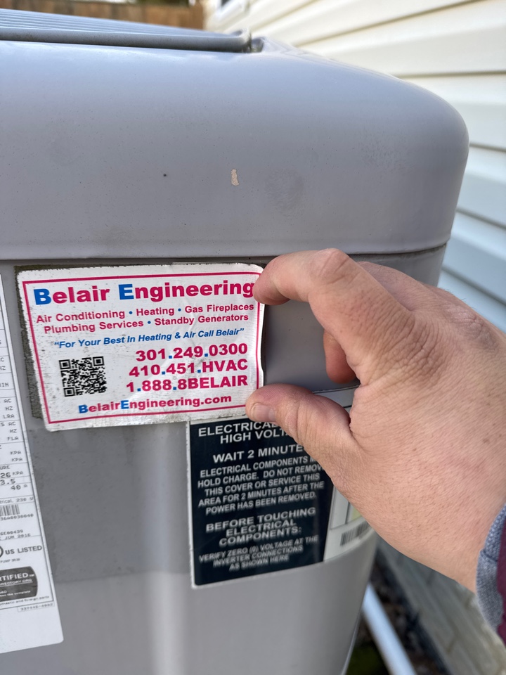 Belair HVAC Tech (Anthony) was on time, did a great job, was committed to customer satisfaction and very clear with his willingness in explaining my HVAC tune-up service. “Keep up the good work”