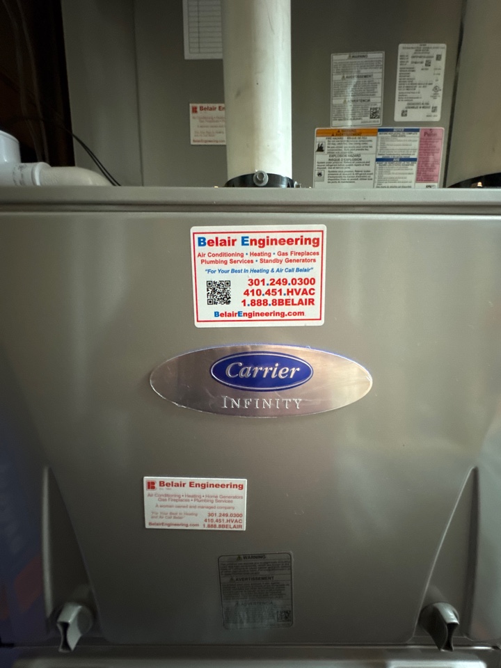 Carrier Infinity heat pump air conditioner heating & AC air conditioning system repair service call Annapolis Maryland 21401