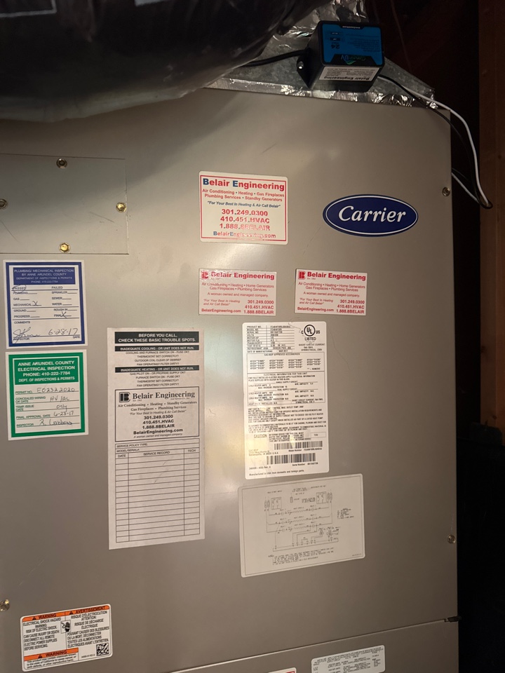 Carrier comfortmaker air conditioner heating & AC air conditioning system repair service call Annapolis Maryland 21401